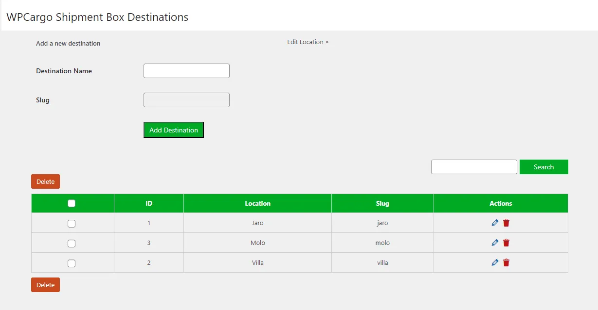 - Location- admin can add origin and destination in WordPress admin