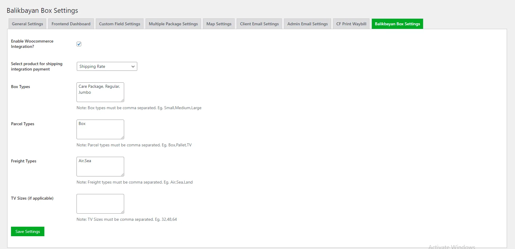 Balikbayan Box Settings