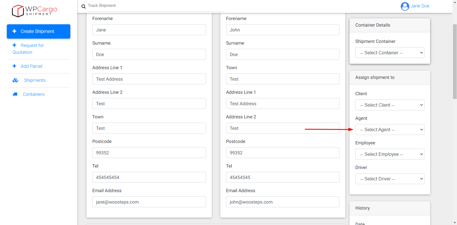 For assigning agent choose in Agent dropdown