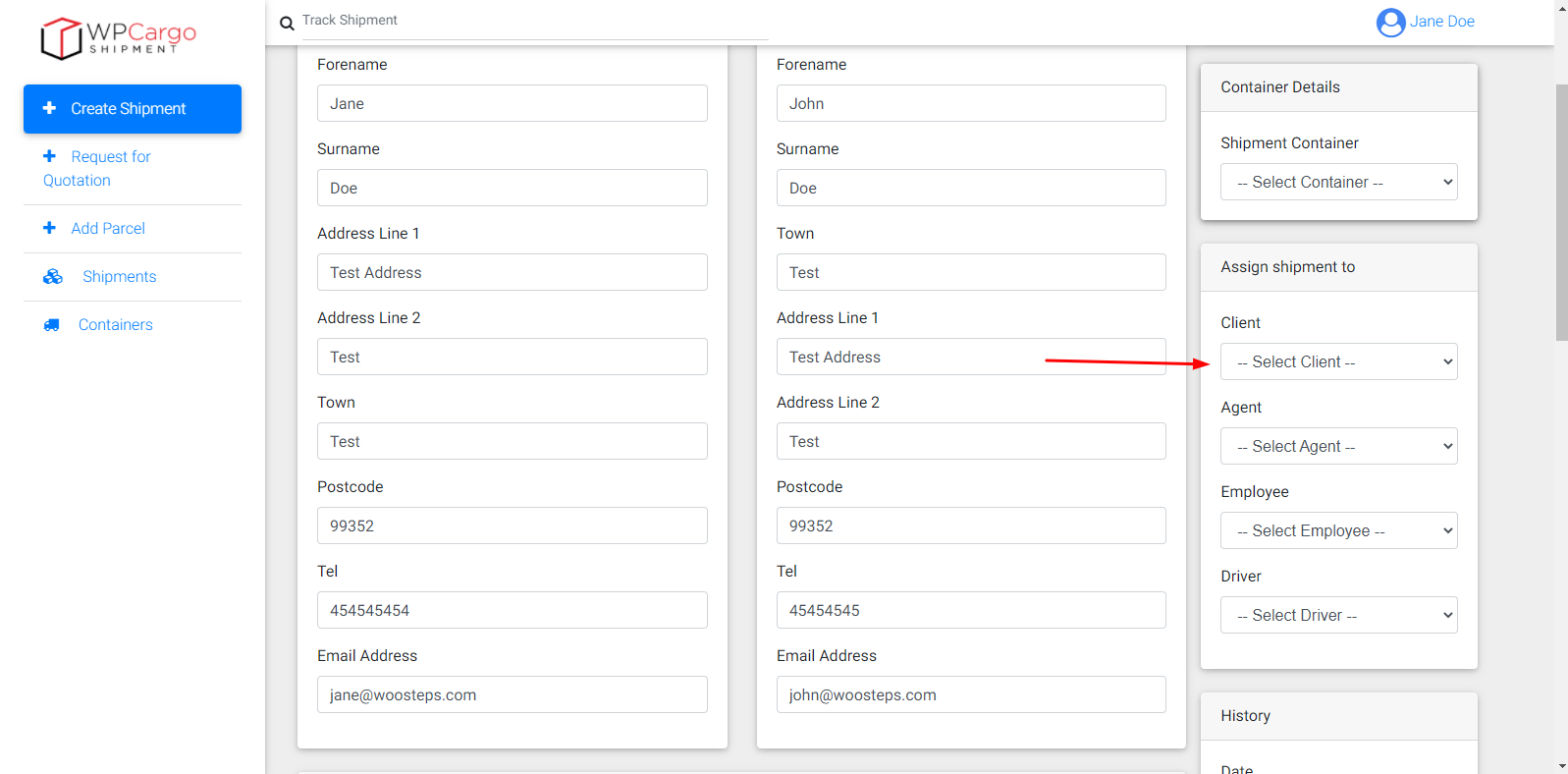 For assigning client choose one in Client dropdown