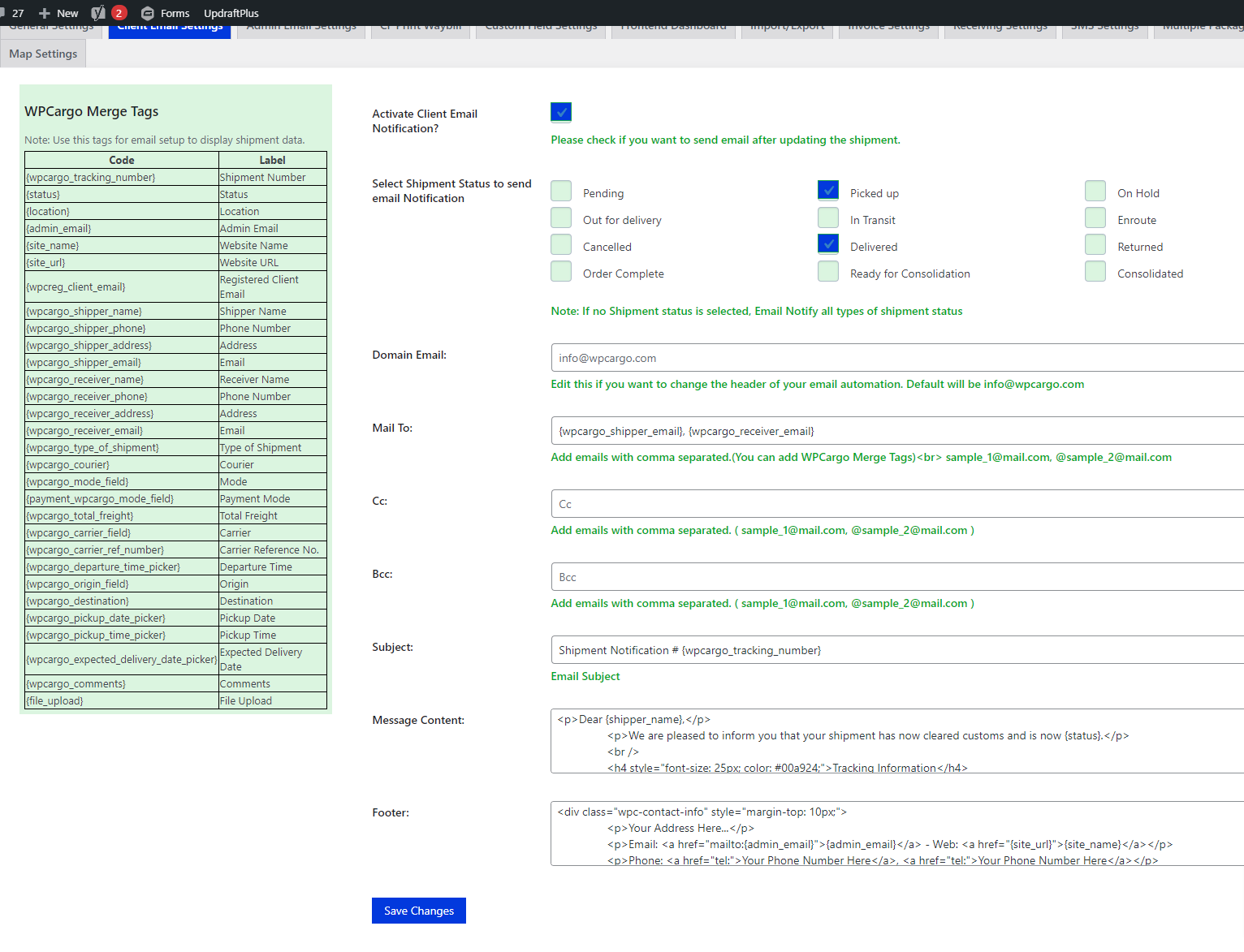 - Shipper Email – {wpcargo_shipper_email}