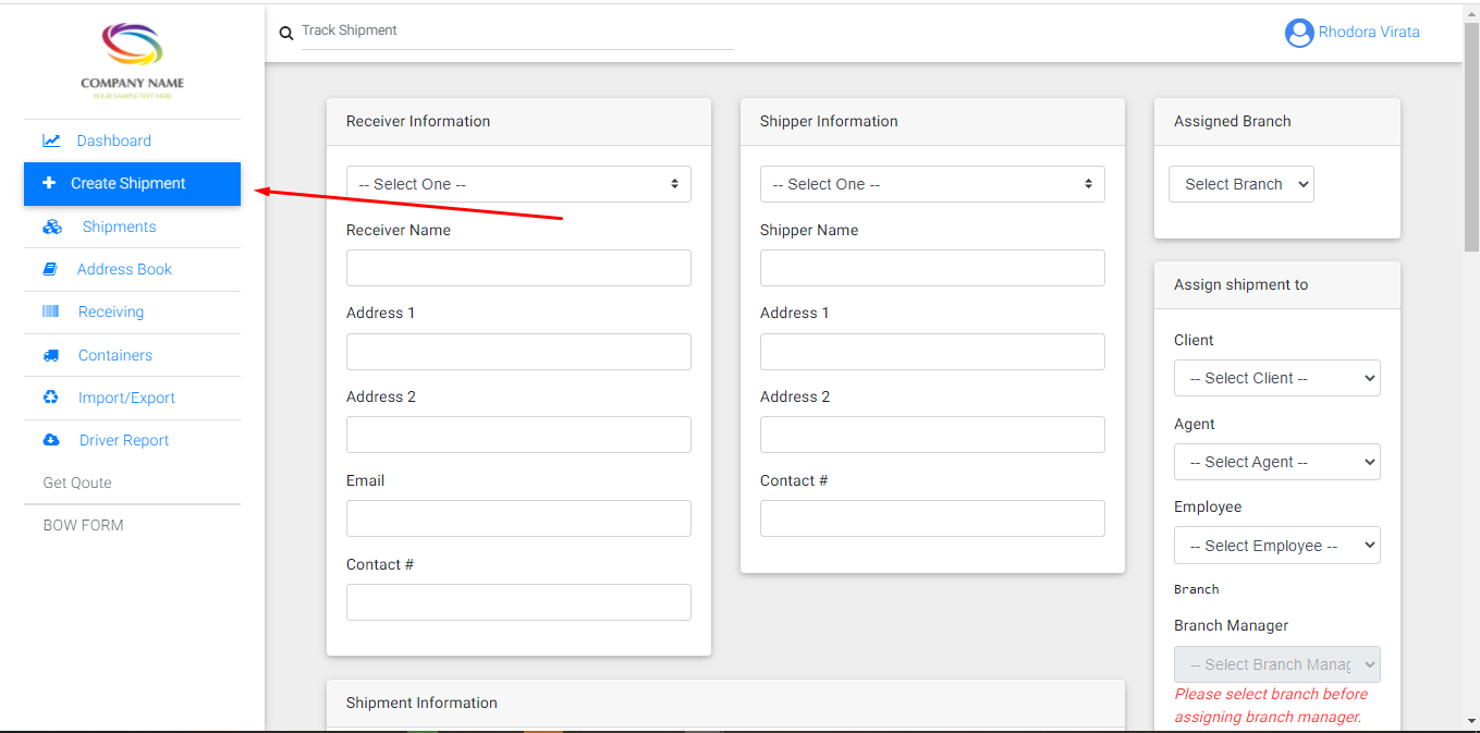 • Email(email) – this will be used if email notification for client is enabledFill in fields for the shipment details.