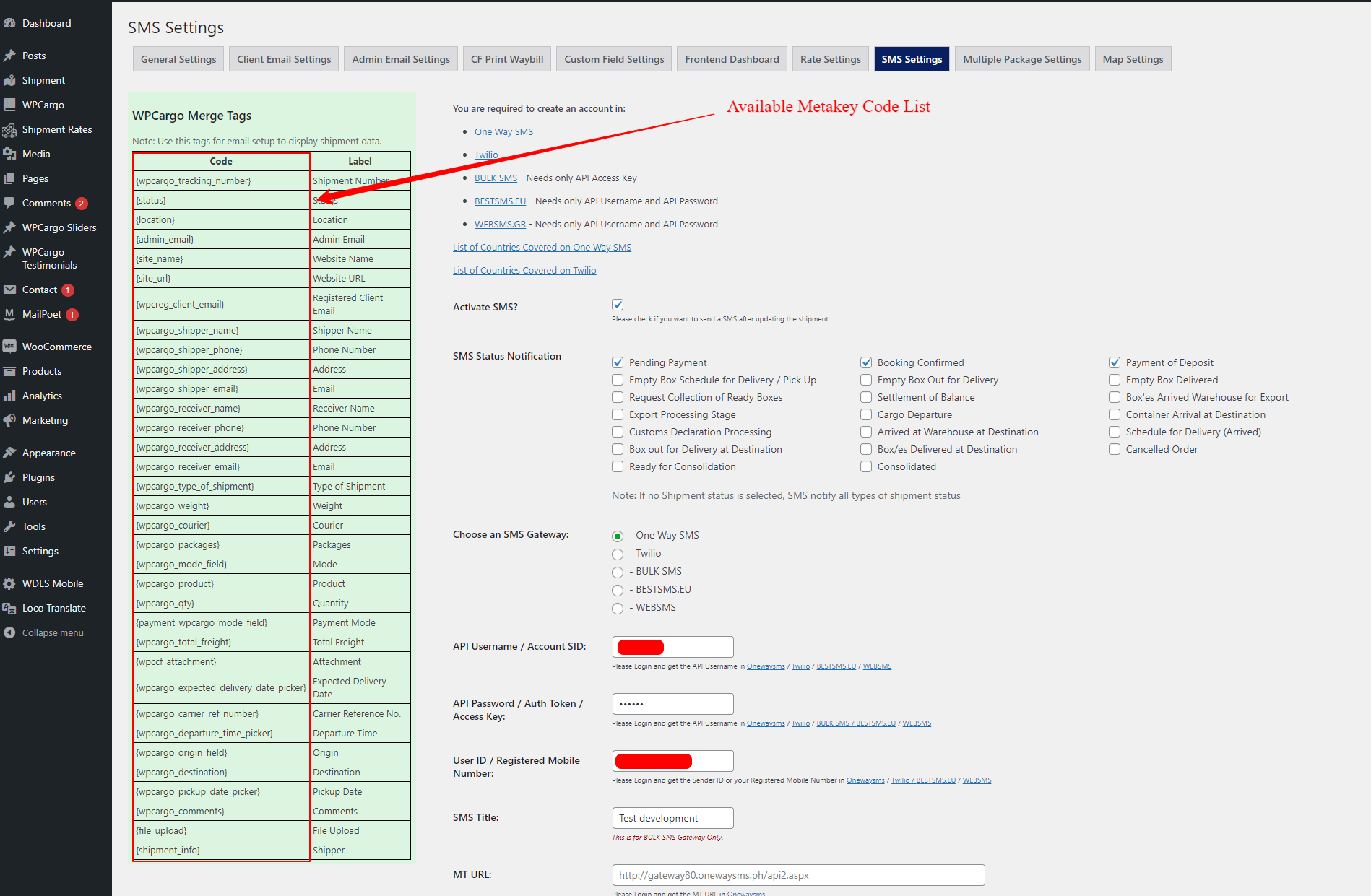Note: This “wpcsms_message” is only available with the SMS Add on 4.3.4+ version