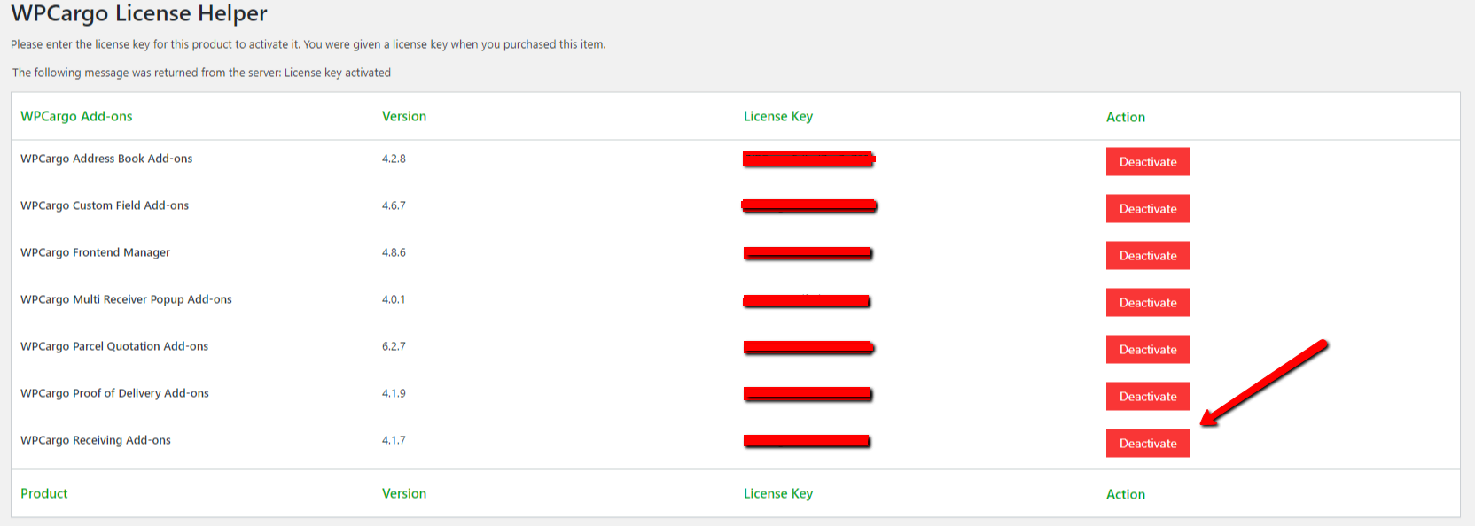 - Paste license key to WPCargo Receiving Add-ons field and click the Activate button.