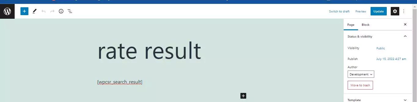 1. Create page and paste the shortcode [wpcsr_search_result]