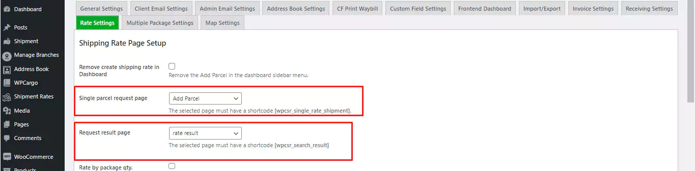 2. Update the Add Parcel Page (this page contains this shortcode: [wpcsr_single_rate_shipment])