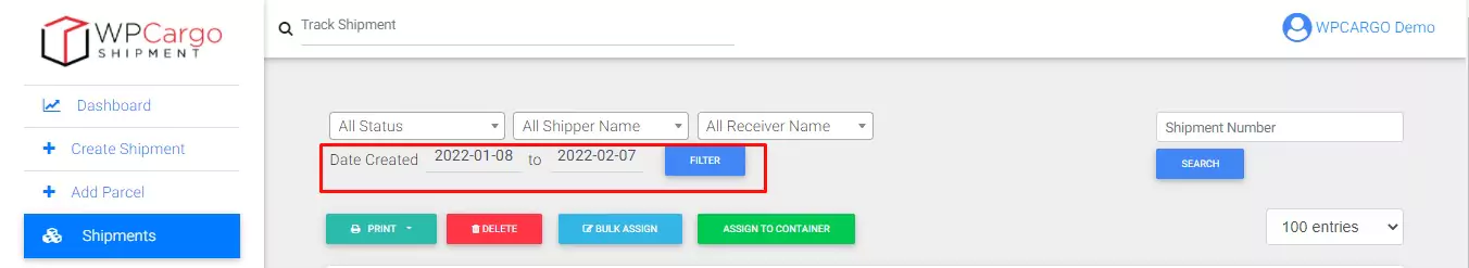 //remove date range filter remove_action( 'wpcfe_after_shipment_filters', 'wpcfe_shipment_created_date_filter_callback', 100 ); remove_filter( 'wpcfe_dashboard_arguments', 'wpcfe_shipment_created_date_quuery_args_callback' );