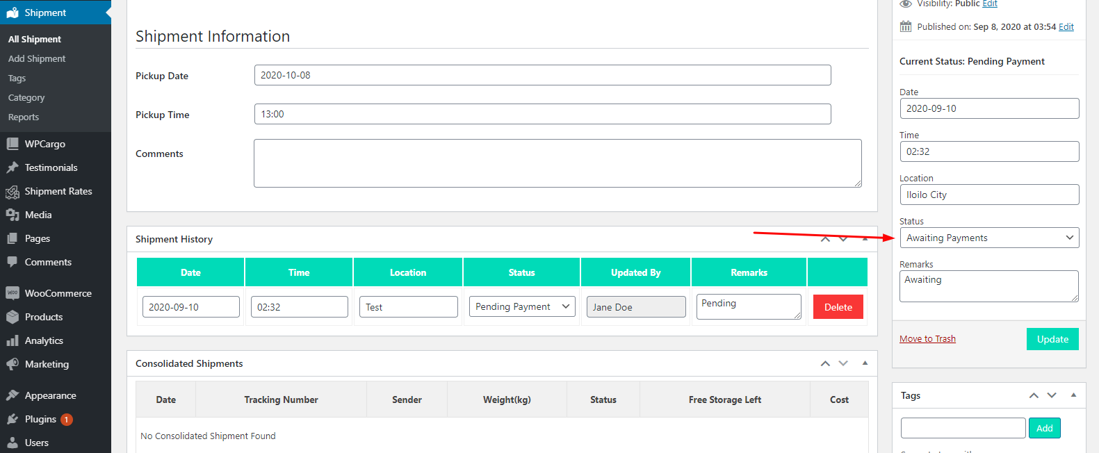 How to show Pay Now button in consolidated items How to show Pay Now button in consolidated items 1. Go to Shipment > All Shipment 2. Click Edit button 2. Change the status to Awaiting Payments