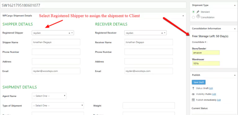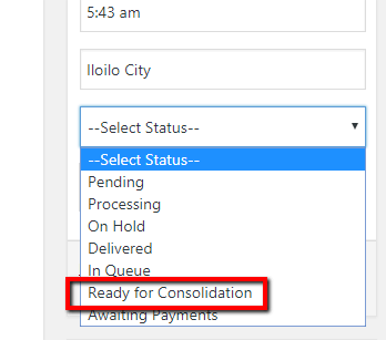 Step 3: Setting up the shipment for “consolidation” You have to choose this status.