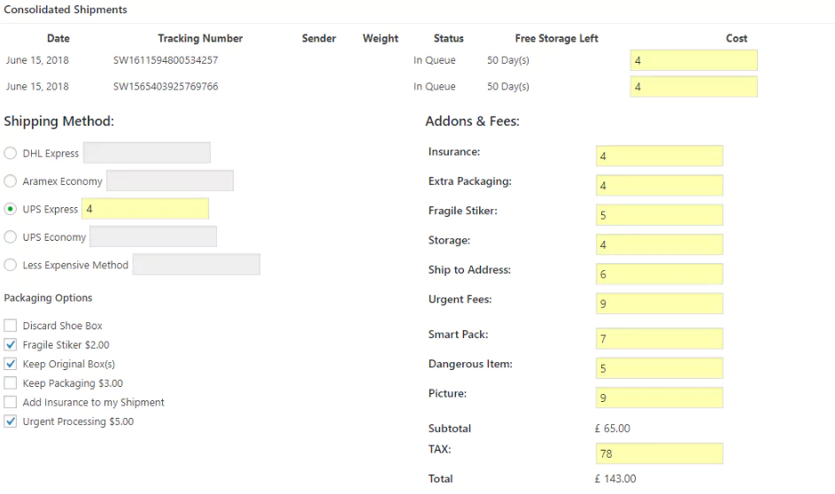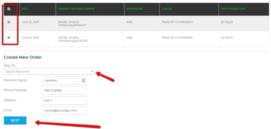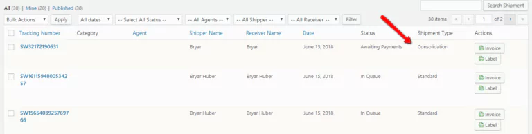 Step 5: Preparing the consolidation shipment for payment. You have to select all the shipment that you’re going to consolidate then press submit.