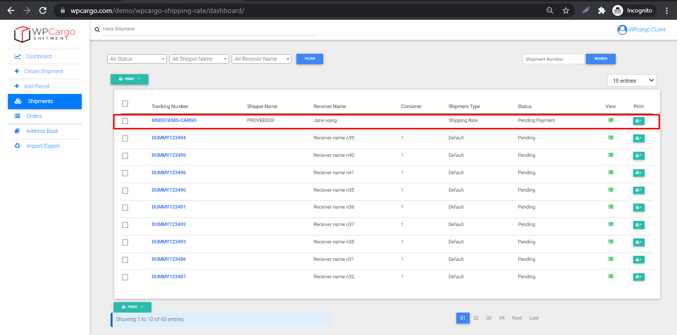 - Go back to Dashboard and you can see new shipment is added.